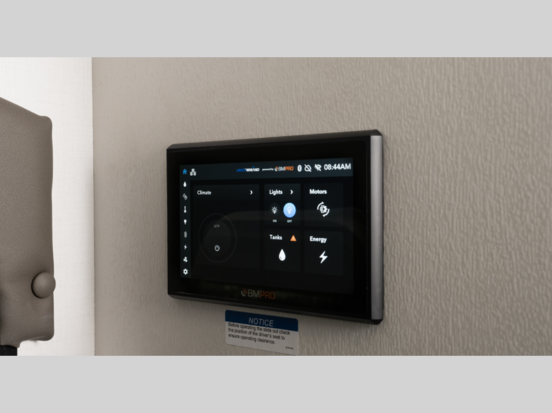 - BMPRO total coach control system with wall-mounted touchscreen and mobile app