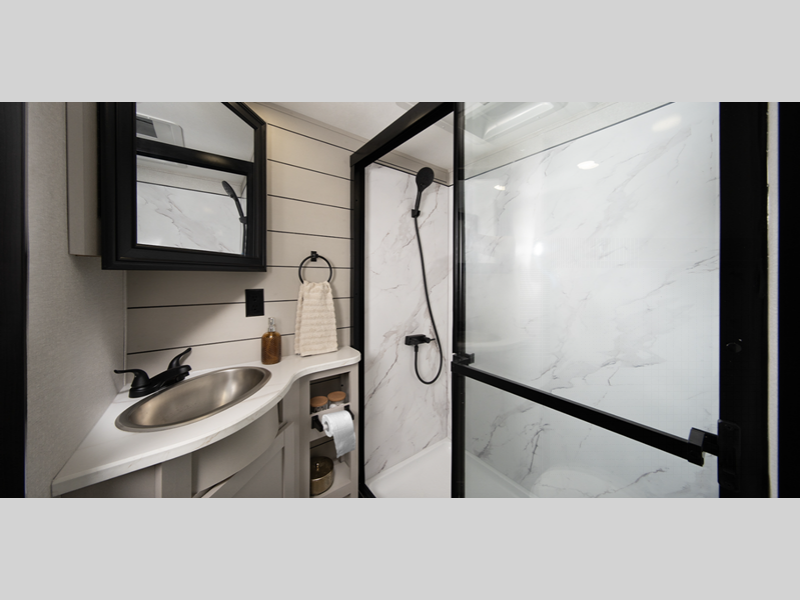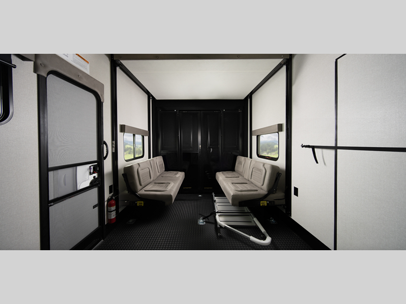 - Stronghold VBL™ aluminum-framed and vacuum-bond laminated gel-coated fiberglass exterior walls and slide room end walls