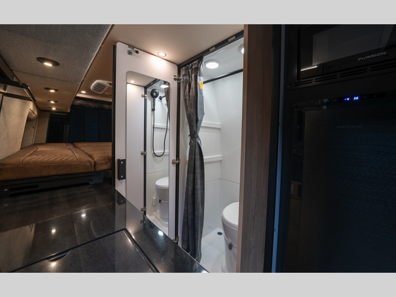 Sleeps 2 Length 23 ft Ext Width 7 ft 8 in Ext Height 10 ft Int Height 6 ft 2 in Exterior Color Selenite Grey, Stone Grey, Grey White Fresh Water Capacity 37 gals Grey Water Capacity 24 gals Black Water Capacity 4.75 gals Fuel Type Diesel Engine 3500XD 4-Cylinder High Output AWD Chassis Mercedes-Benz Sprinter Fuel Capacity 24.5 gals Wheelbase 170 in Refrigerator Type Refrigerator/Freezer Refrigerator Size 3.3 cu ft Cooktop Burners 1 Water Heater Type Continuous Shower Type Wet/Bath Shower Electrical Service 30 amp Solar Wattage 150 watts