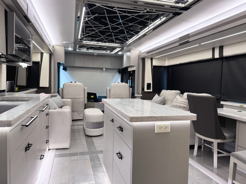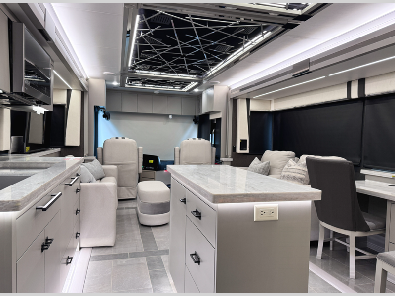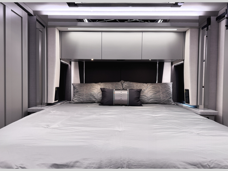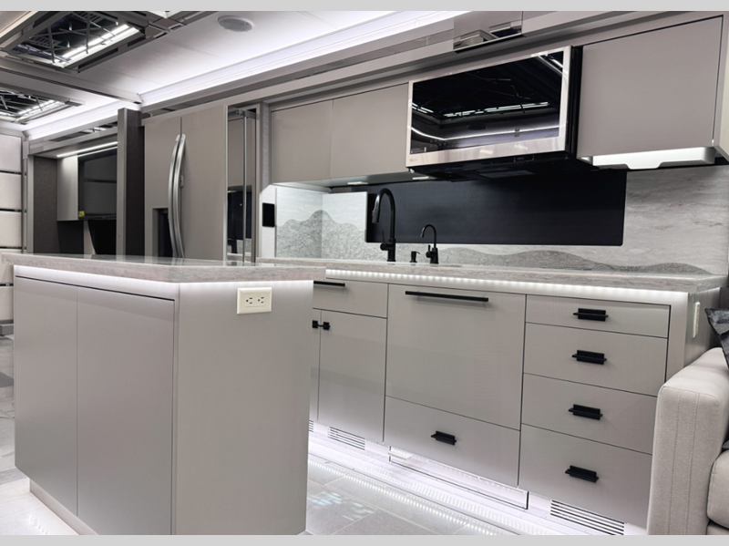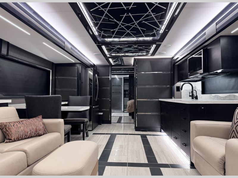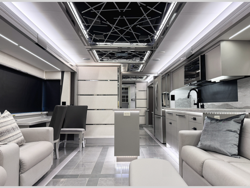 Touring the country or your home state will be easier than ever with the advanced monitor system with JBL sounds, the navigation system, and the 360 degree view camera system. You are sure to stay comfortable on the lifestyle leather power adjustable captain's seats, plus there is a tilt and telescoping wheel with integrated controls that can keep you in control of dash functions. You will love the new features that include Generation 13 paint schemes, plus a now standard exterior ladder, beverage center, and Starlink Pro with a subscription!